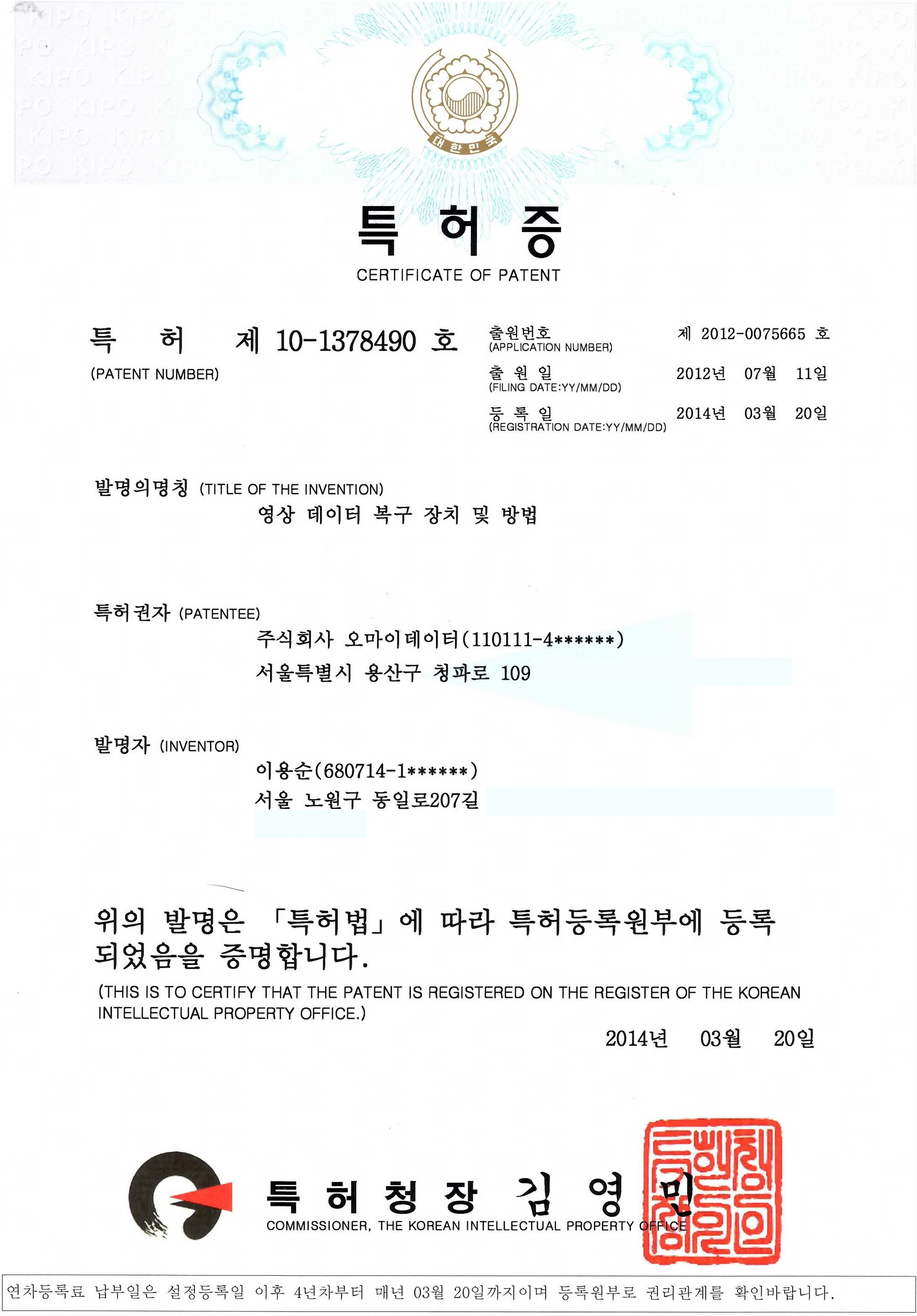 특허받은 기술로, 손상된 동영상을 복구해드립니다